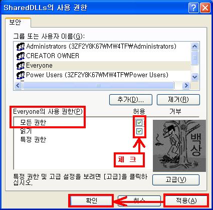 6 ." 적용"버튼누른후ㅡ> 확인을 누릅니다.