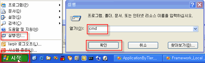 - 시작> 실행> CMD >확인